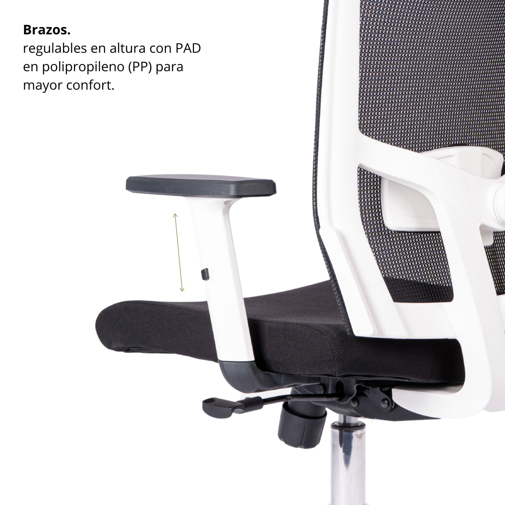 Silla giratoria Italiana premium, diseñada para brindar confort y funcionalidad en espacios de oficina. Cuenta con espaldar tapizado en malla que incluye soporte lumbar para mayor ergonomía. El asiento está elaborado en espuma de alta densidad y tapizado en tela. Incorpora un mecanismo basculante con ajuste de altura y bloqueo de reclinamiento. Los brazos son de polipropileno, ajustables en altura, con PAD del mismo material para mayor comodidad. base cromada, con rodachinas en PU que permiten un deslizamiento suave y silencioso.