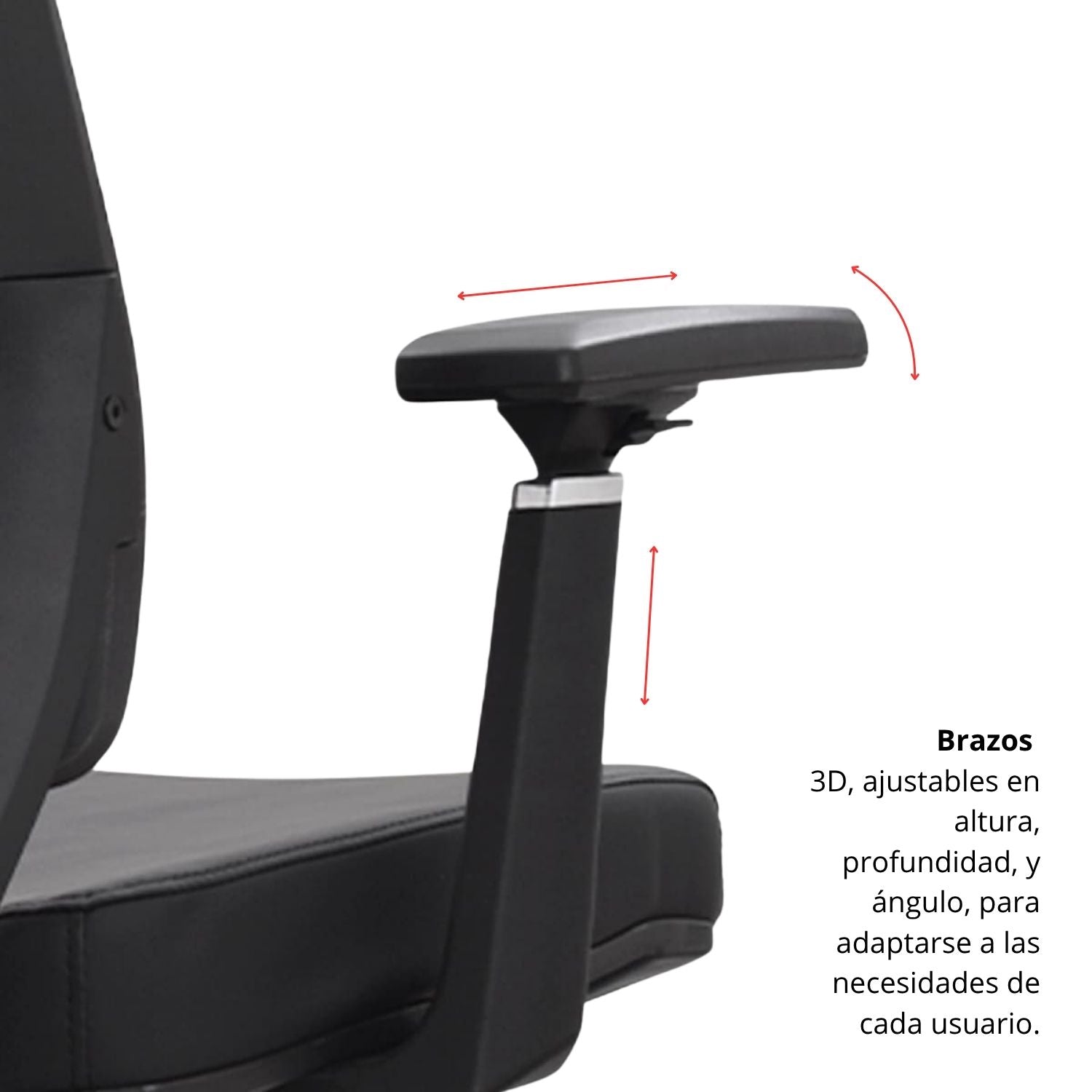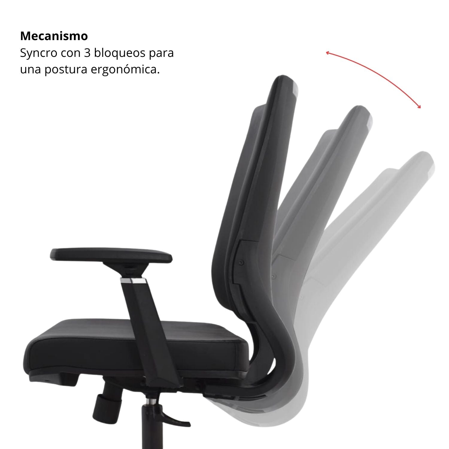 La silla combina estilo moderno y funcionalidad para brindar comodidad durante toda la jornada. Su espaldar medio en espuma y asiento tapizado en cuero sintético ofrecen un soporte ergonómico y duradero. Los brazos 3D ajustables permiten una adaptación precisa a las necesidades del usuario, mientras que el mecanismo syncro con 3 bloqueos favorece una postura saludable y dinámica. Su base en nylon y ruedas de goma garantizan un movimiento suave y silencioso. Ideal para espacios de trabajo profesionales que buscan confort y diseño.